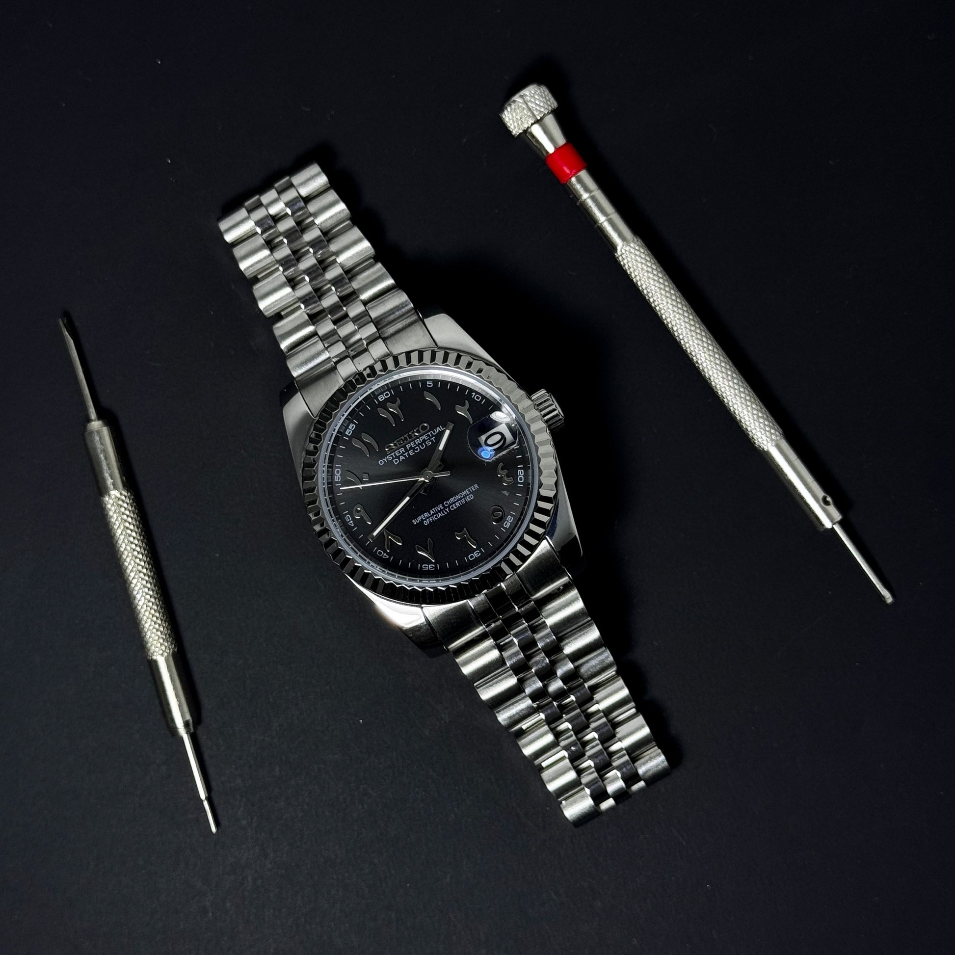 DATEJUST BLACK ARABIC - CUSTOM SEIKO NH35 AUTOMATIC WATCH