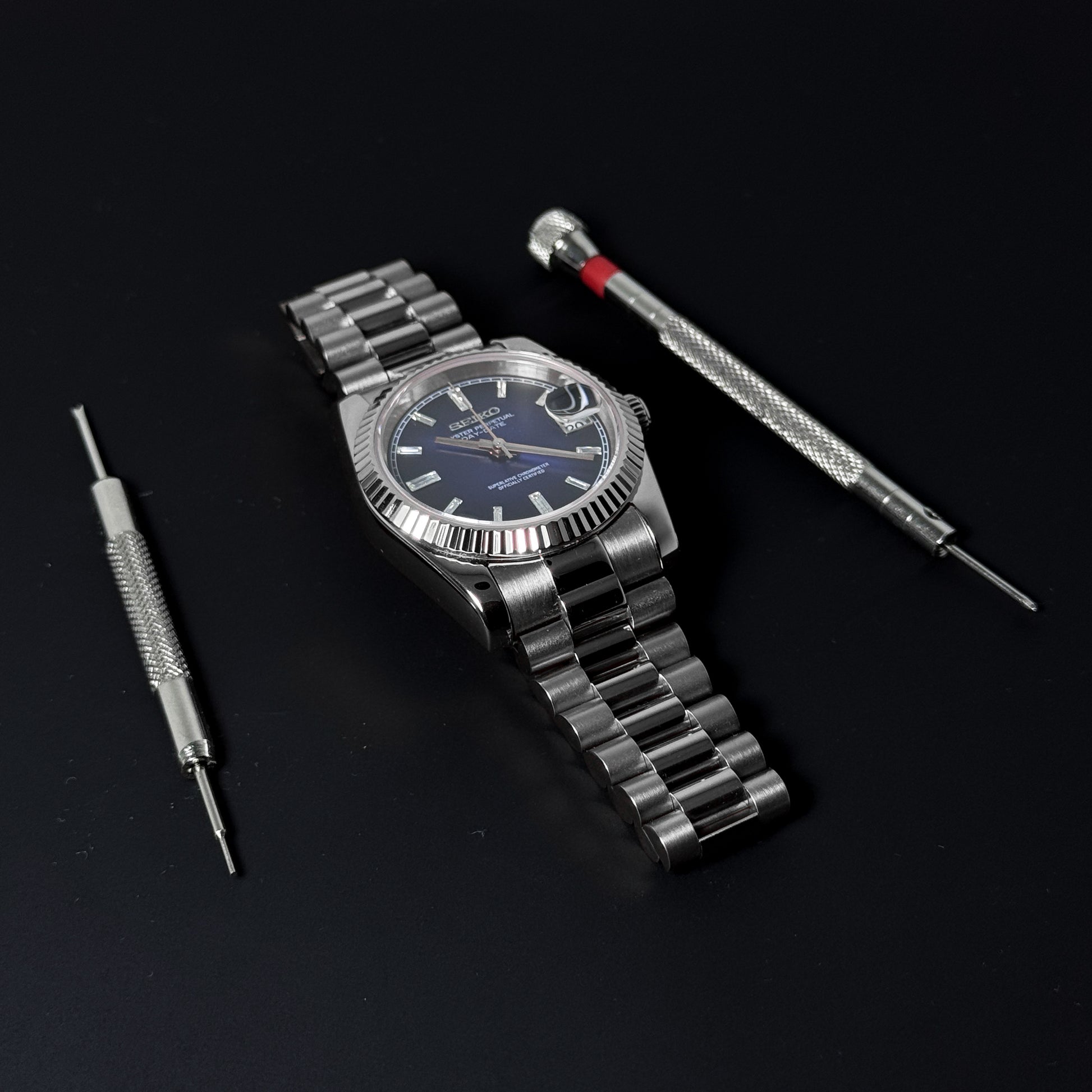 DATEJUST MIDNIGHT BLUE CRYSTALS - CUSTOM SEIKO NH35 AUTOMATIC WATCH