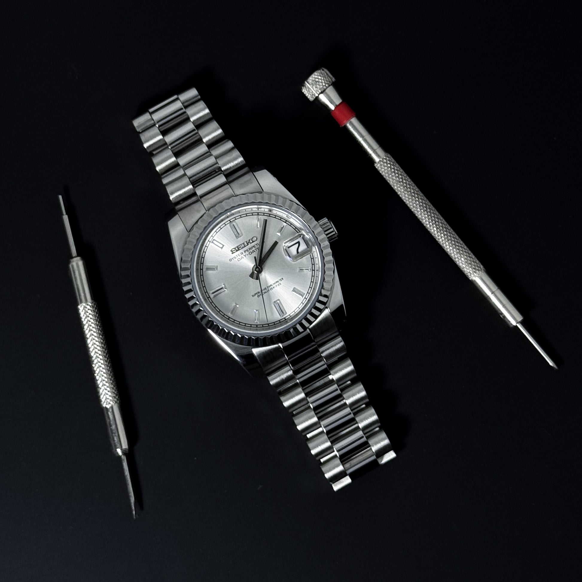 DATEJUST SILVER CRYSTALS - CUSTOM SEIKO NH35 AUTOMATIC WATCH